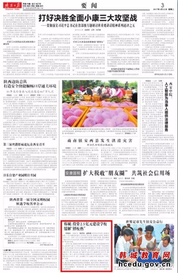 三是平台搭建成效明显。着力推进“借助‘大媒体’、构建‘大宣传’”格局建设,实现重点工作在《中国教育报》《陕西日报》“人民网”“陕西省教育厅官网”“陕西教育新闻网”的刊发,切实提升了韩城教育的影响力,多项重点工作得到中省媒体的关注;加强与《韩城日报》合作,充分发挥党报权威和新闻性强的特点,及时发声发布重点工作进展情况,合作共建的“追赶超越看教育”专栏实现质量和数量双提升,一年来累计完成专栏50余期,为教育事业改革发展营造了良好的氛围。积极适应媒体融合发展趋势,在“一网两微”的基础上,先后入驻今日头条、网易号、搜狐号、企鹅号等平台,新媒体阵地不断扩大。