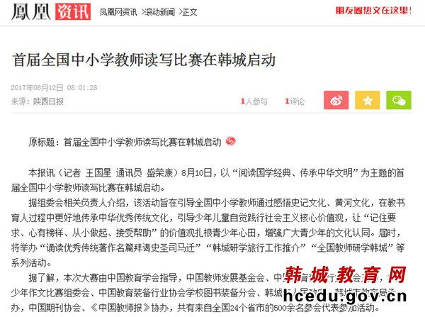 2017年12月8日,陕西省教育系统信息工作培训大会在我市圆满落幕举行,实现全省教育系统信息工作会议多年来再次在地市召开,全省各市(区)教育局、部分县(区)教育局,各高校,省教育厅直属中等专业学校,省委高教工委、省教育厅各部(处)室、直属单位有关领导、信息员及我市信息员共计320余人参加。省委高教工委、省教育厅、陕西教育报刊社有限责任公司等有关方面领导出席,在彰显各级领导认可韩城教育信息工作、关注重视韩城教育的同时,展示了计划单列特别是省十三次党代会韩城经济社会发展和建设区域教育中心城市取得的成果,新韩城、新气象、新成效受到参会人员点赞与好评。